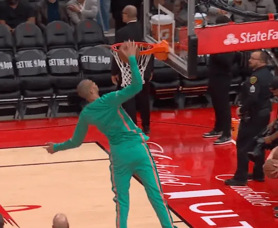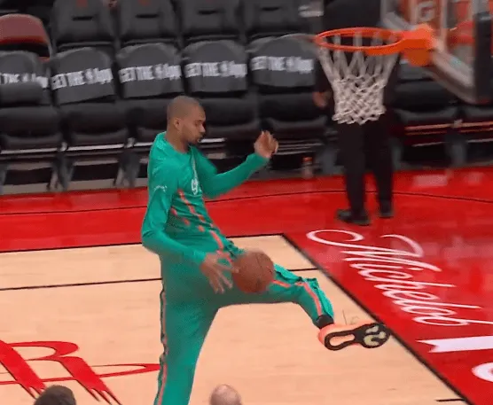NBA官方晒出文班今日赛前热身片段:击地胯下再拿球完成战斧劈扣。